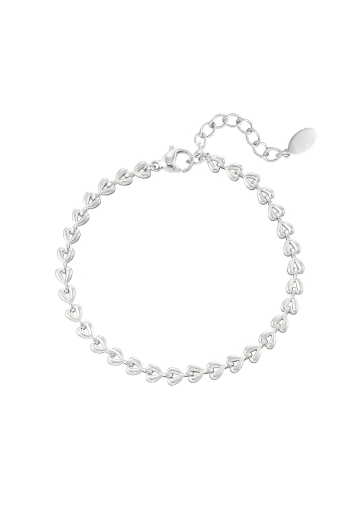 Hoe leuk is deze armband met aaneengsloten hartjes. Deze prachtige armband is gemaakt van Stainless steel en strass steentjes heeft een afmeting van 16 tot en met 19 cm, verstelbaar dus. Deze look kan je helemaal afmaken met de bijpassende ketting, die ook bij start2shine te vinden is.