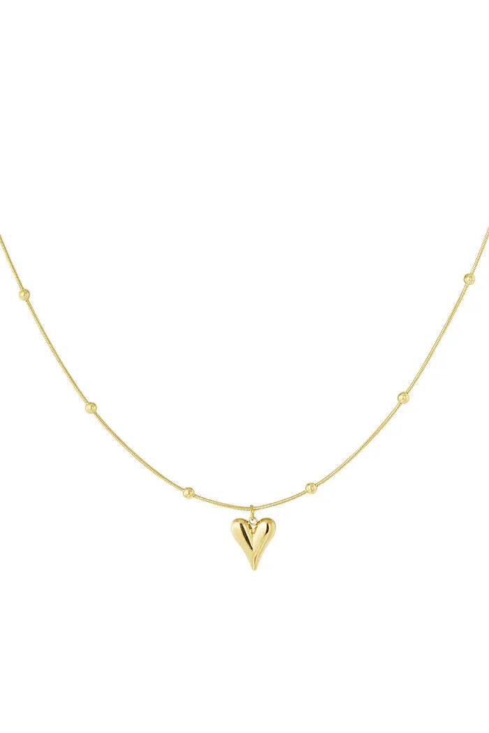 Hoe leuk is deze hartjes ketting met bolletjes? Een echte must have voor jouw winkel! De ketting is gemaakt van Stainless Steel en is 40 (+5) centimeter lang.