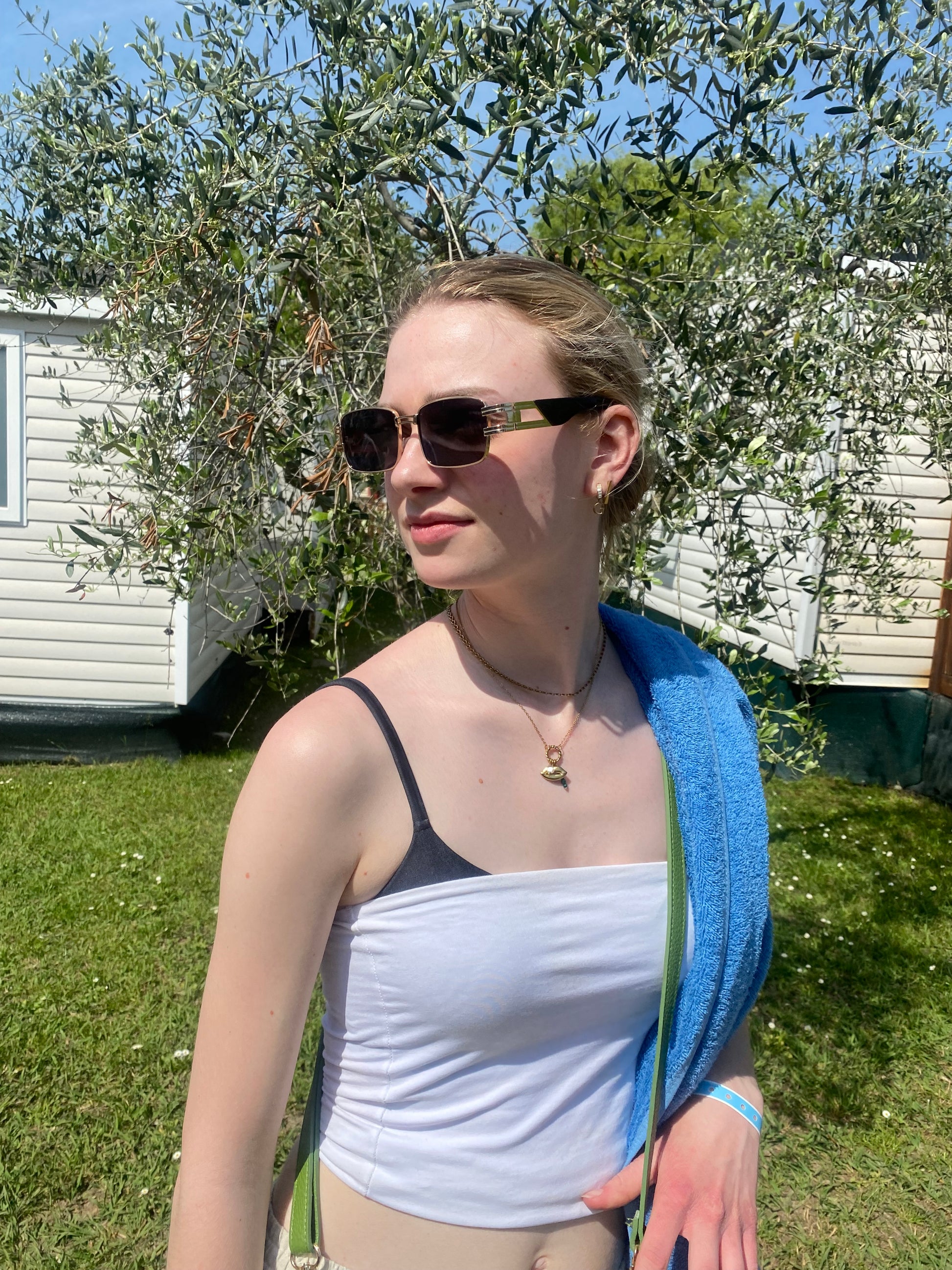 De bril is inclusief brillendoekje en brillenhouder. Maak je zomer of festival outfit compleet. De zonnebril is gemaakt van PC en metaal.